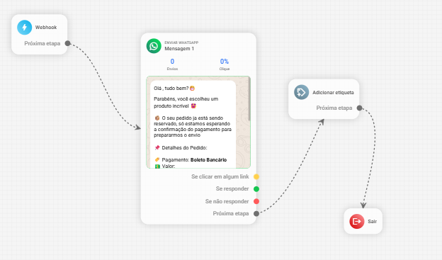Observação: Caso você possua outros produtos e queira enviar mensagens diferentes para cada produto, basta adicionar outras condições.
